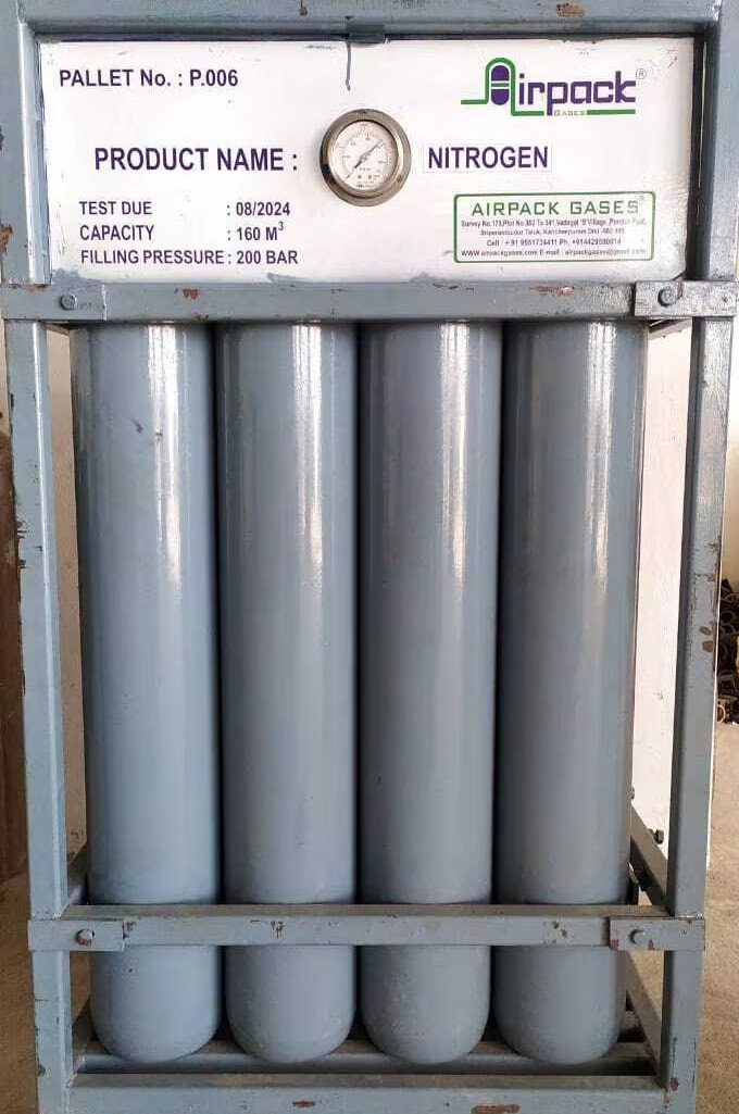 Nitrogen Pallet/Bank from Oxiair Gases is a high-capacity bundled gas solution designed for industries that demand a continuous and stable supply of nitrogen gas. Consisting of multiple high-pressure nitrogen cylinders securely assembled on a single skid, this setup ensures ease of transport, optimized space usage, and uninterrupted operations. Ideal for sectors like electronics, metal fabrication, pharmaceuticals, and food processing, Oxiair’s nitrogen pallets offer reliability, safety, and performance.